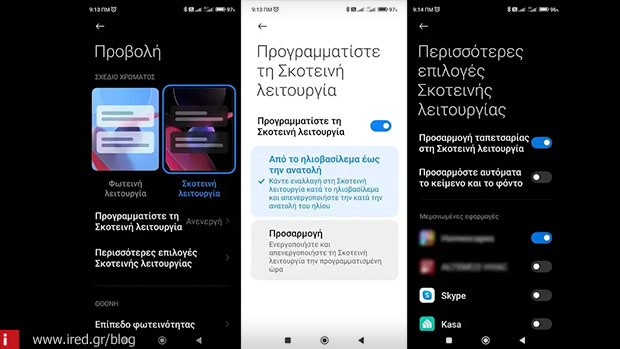 Όλα τα σύγχρονα τηλέφωνα Android έχουν την επιλογή να επιλέξετε ανάμεσα σε μία φωτεινή και μία σκοτεινή λειτουργία (Dark Mode και Night Light) με την φωτεινή να είναι προεπιλεγμένη. Αυτή η επιλογή αξίζει να ενεργοποιηθεί, καθώς μπορεί να μειώσει την καταπόνηση των ματιών τη νύχτα και μπορεί ενδεχομένως να βελτιώσει τον ύπνο σας. Μερικοί άνθρωποι προτιμούν επίσης ένα σκούρο φόντο από ένα ανοιχτόχρωμο. Για να ενεργοποιήσετε την σκοτεινή λειτουργία, μεταβείτε στις ρυθμίσεις συστήματος, μετά στο “Προβολή” και θα το δείτε. Εναλλακτικά στις ρυθμίσεις, αναζητήστε την λέξη “Σκοτεινή”.