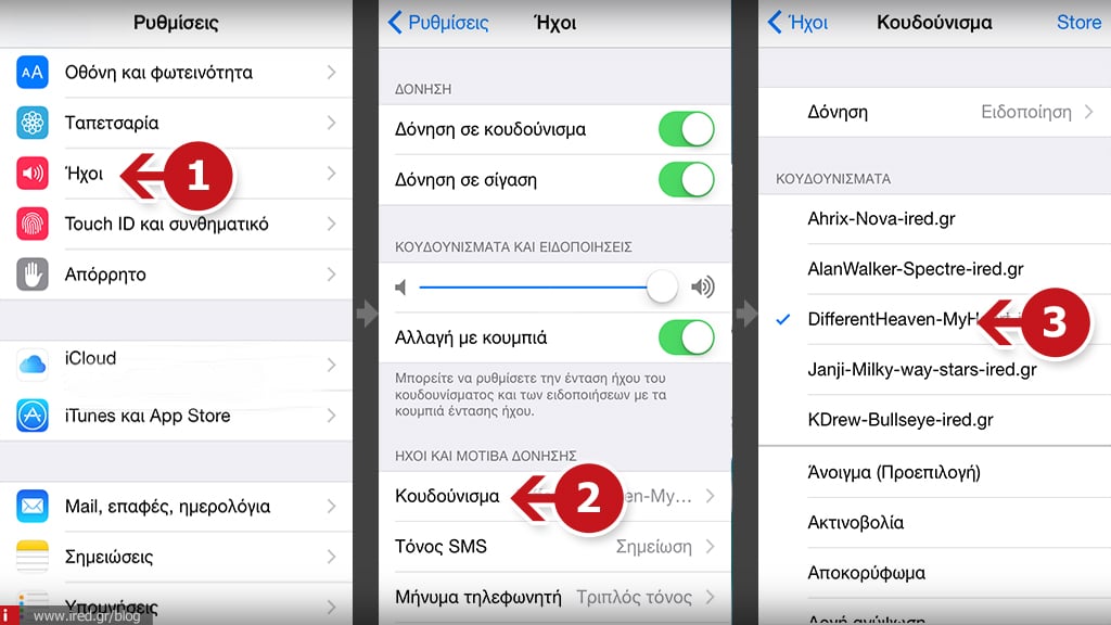 Ρυθμίσεις > Ήχοι > Κουδούνισμα