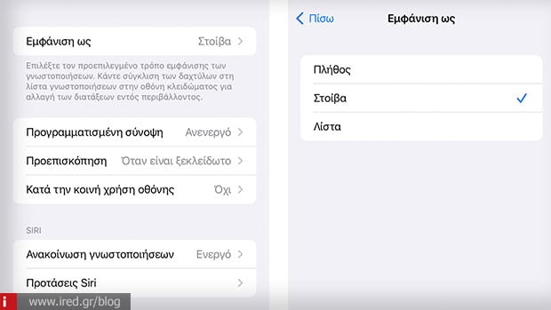 Από προεπιλογή πλέον οι ειδοποιήσεις μεταφέρονται στο κάτω μέρος της οθόνης η μία πάνω από την άλλη. Προστέθηκαν επίσης 3 διαφορετικές επιλογές εμφάνισης (πλήθος, στοίβα και λίστα) ώστε να επιλέξετε όποια προτιμάτε.