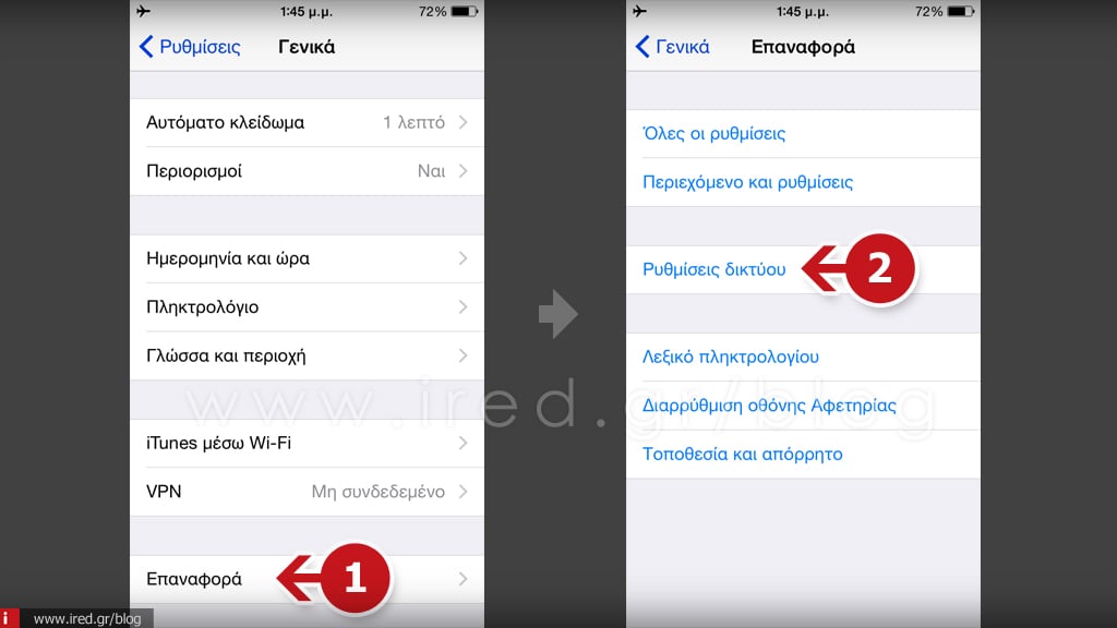 Ρυθμίσεις > Γενικά > Επαναφορά > Ρυθμίσεις δικτύου