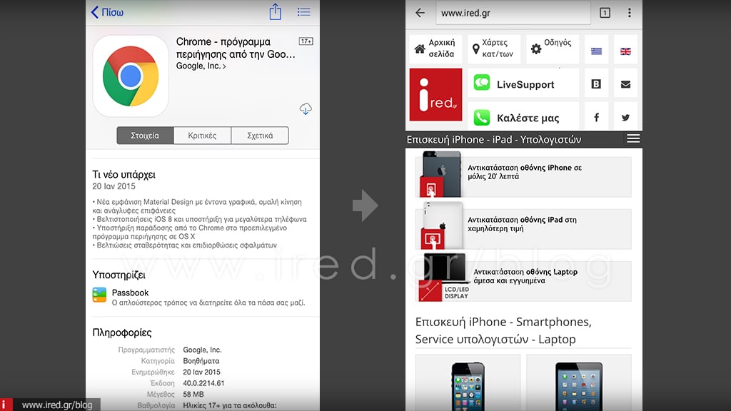 Κυκλοφόρησε στο App Store η νέα έκδοση του Chrome, του περιηγητή ιστοσελίδων της Google. Το περιβάλλον χρήσης έχει αλλάξει και ακολουθεί τις σχεδιαστικές γραμμές του Android 5.0 (Lollipop). Η Google το ονομάζει “Material Design” και φιλοδοξεί με την απλότητά του να κερδίσει τους χρήστες.