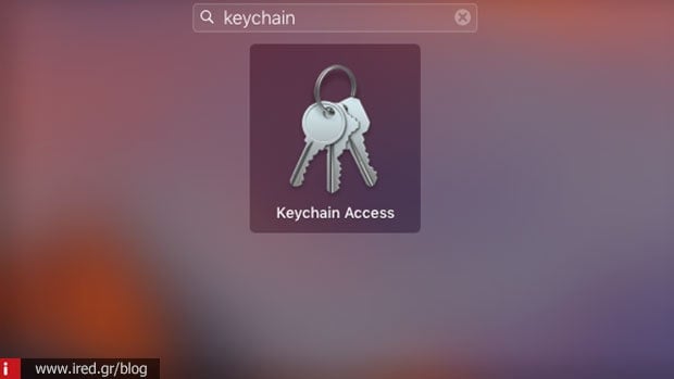 Ανοίξτε την εφαρμογή Keychain Access. Σε περίπτωση που δεν γνωρίζετε που είναι, μεταβείτε στο Spotlight και πληκτρολογείτε Keychain Access για να βρείτε την εφαρμογή
