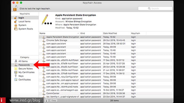 Στο Keychain αποθηκεύονται επίσης κωδικοί από διάφορες εφαρμογές ή σελίδες που χρησιμοποιείτε όποτε σε περίπτωση που ξεχάσετε κάποιον άλλον από τους κωδικούς σας ίσως να τον βρείτε εκεί!