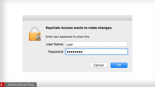Πιθανόν πριν εμφανιστεί ο κωδικός να σας ζητηθεί να συμπληρώσετε το όνομα χρήστη και τον κωδικό που χρησιμοποιείτε στο mac σας